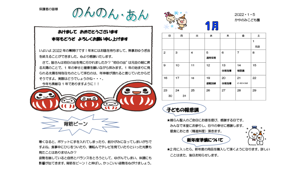 いよいよ2022年の幕開けです!年末にはお陰を持ちまして、無事おゆうぎ会を終えることができました。心より感謝いたします。